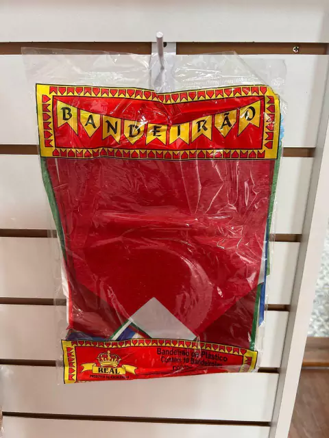 Bandeirão de plástico 10m com 19 bandeirolas coloridas.