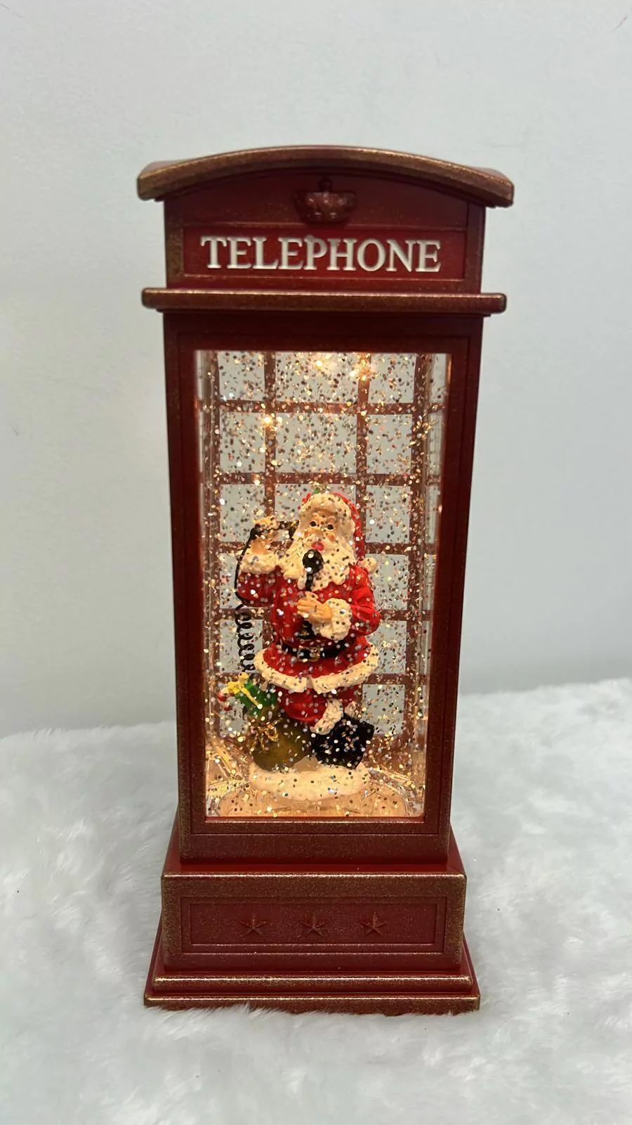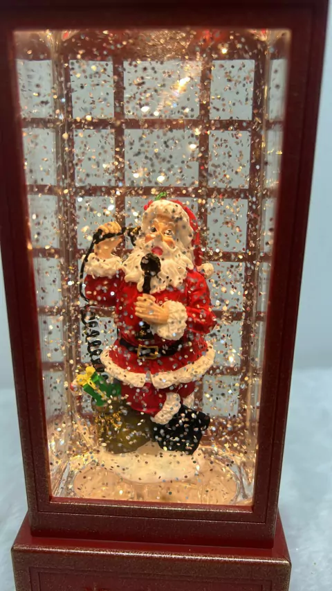 Cabine Telefônica Papai Noel com música e led com 25cm de altura.