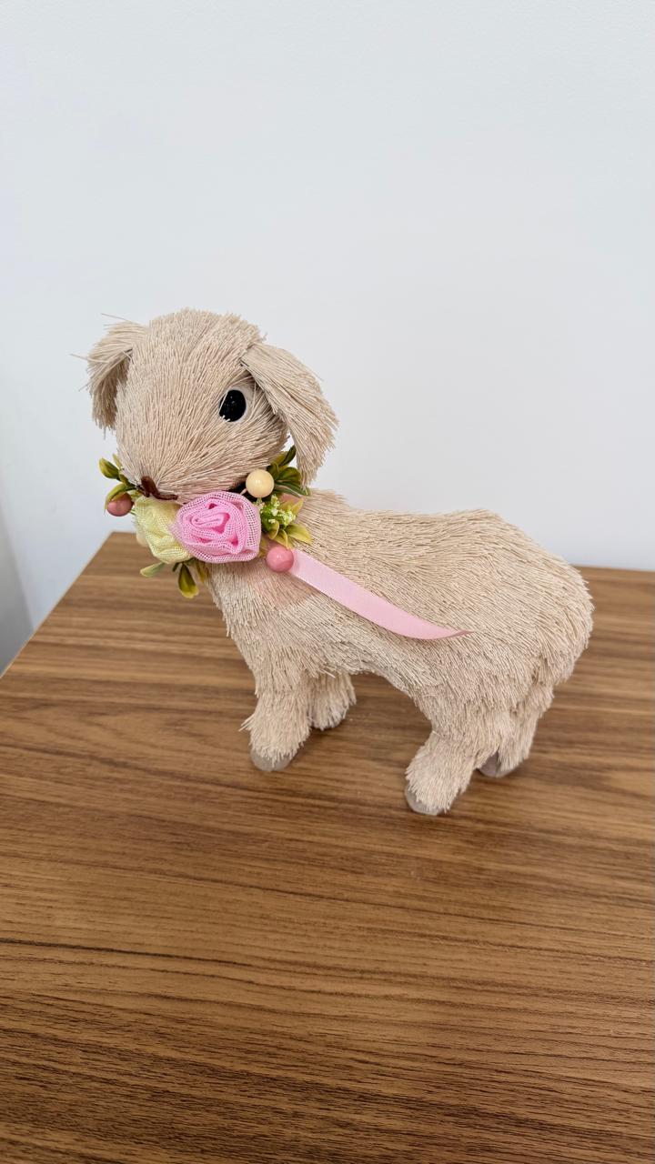 Coelho em pé de palha bege 45cm