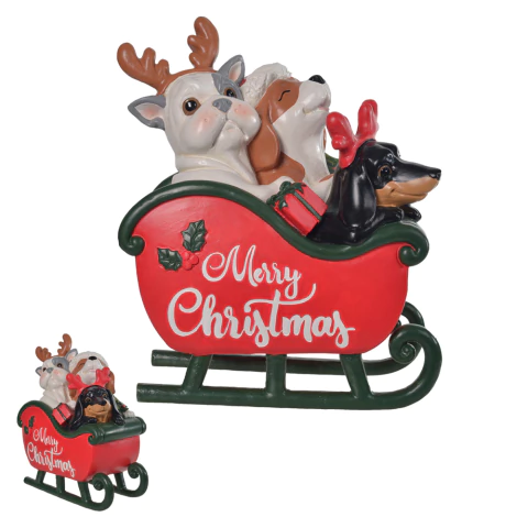Cachorros no trenó em resina 34cm quantidade