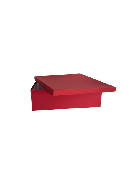 Caixa quadrada baixa de presente vermelha, em papelão cartonado, 60x60x18cm