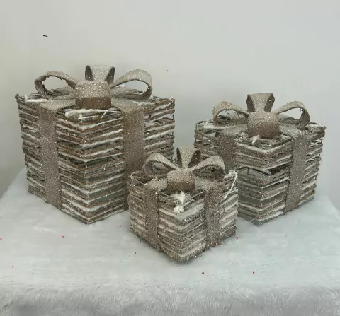 Caixa de presente decorativa cru e dourada com 3 pçs