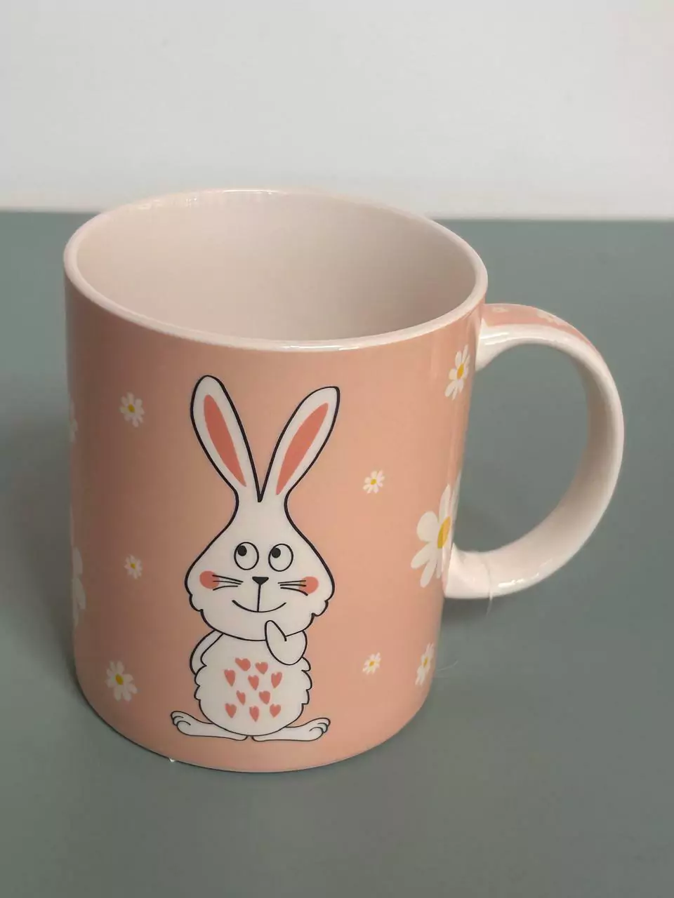Caneca de louça rosé com coelhinho