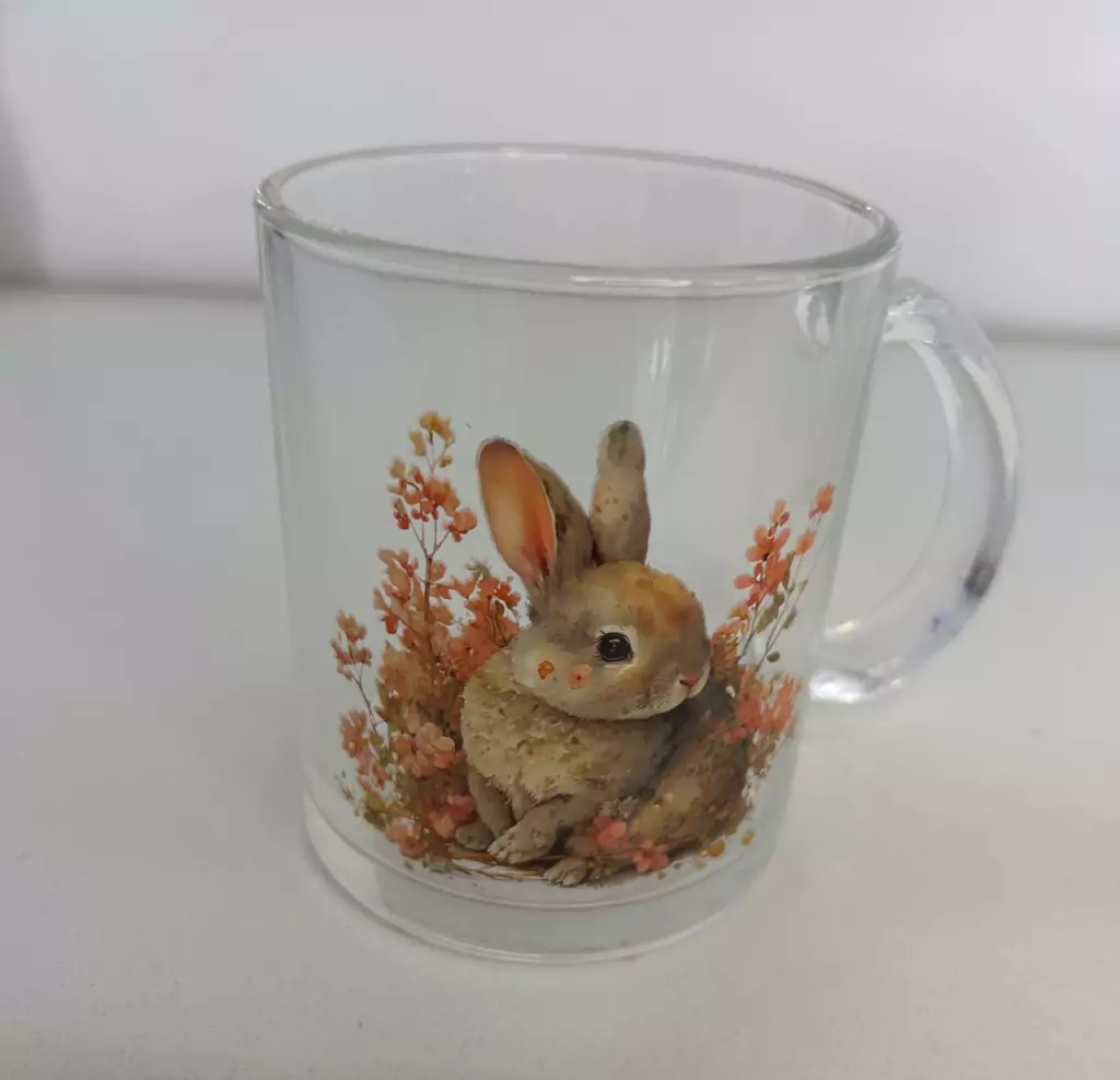 Caneca de vidro com desenho coelho 12cm Cód. 1039721-1