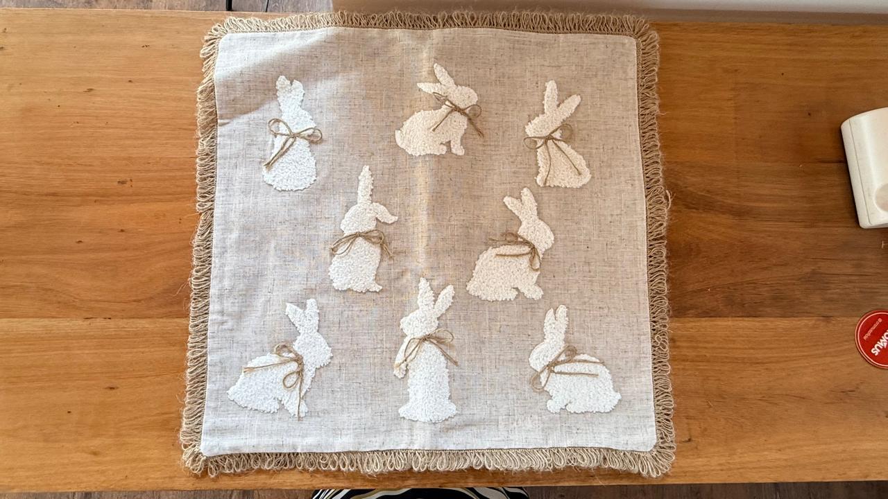 Capa de almofada cru com coelhinhos 45x45cm