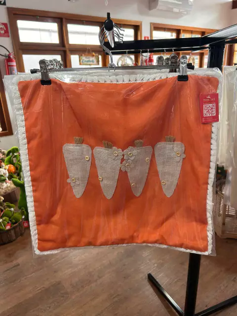 Capa de almofada rústica laranja com aplique de cenouras 50x50cm.  Não acompanha enchimento.