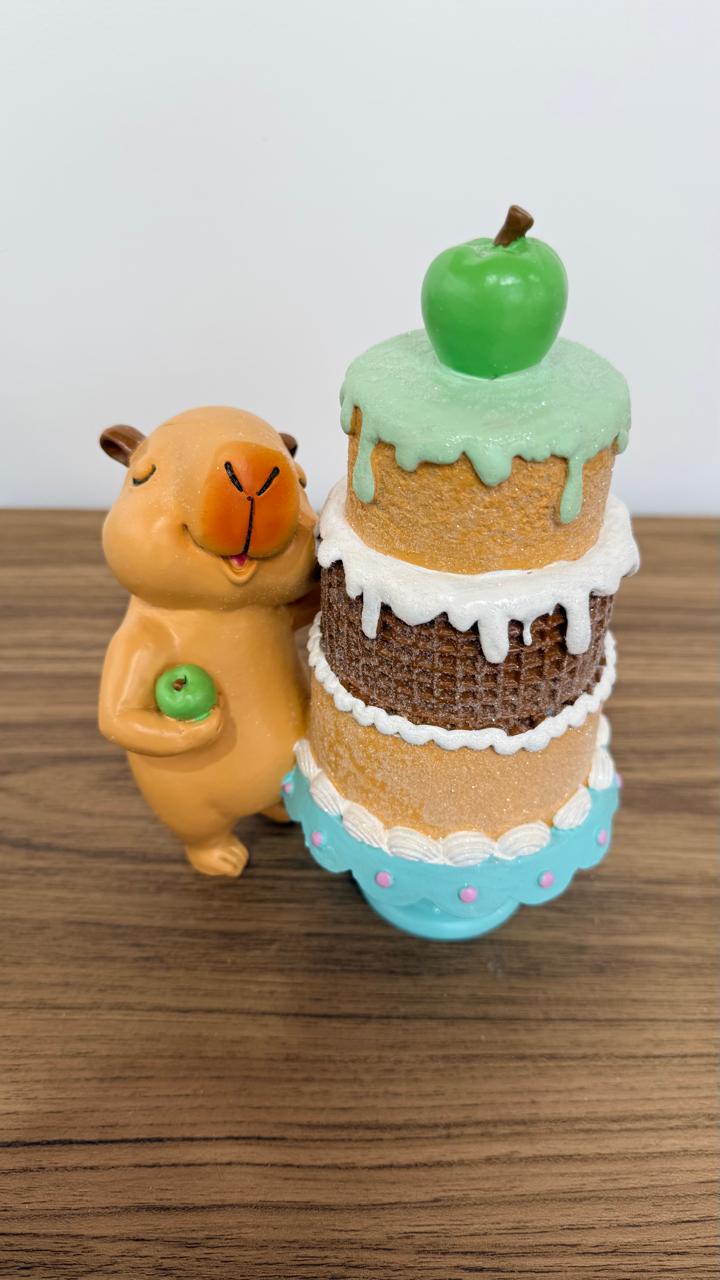Capivara com bolo de resina 20cm