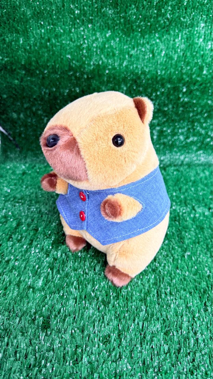 Capivara de pelúcia com roupa jeans, com 20x13x13cm