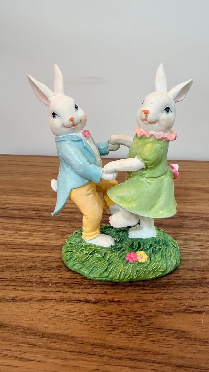 Casal coelhos dançando resina 14cm