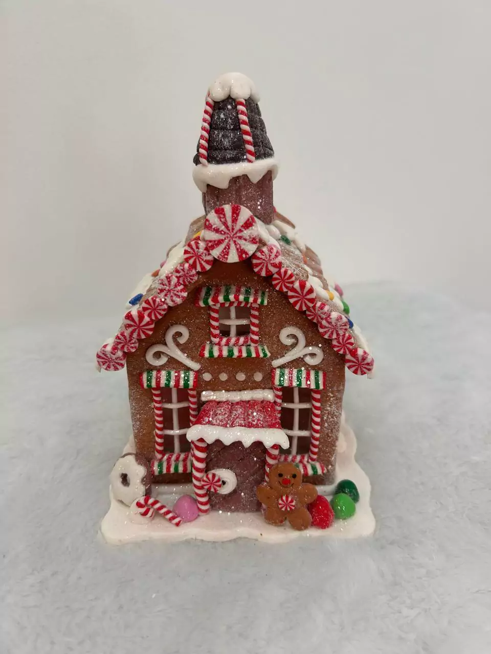 Enfeite de mesa Casinha de Doces, com luzes. Sem movimento e sem música.