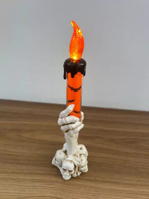 Castiçal mão assustadora laranja com led.