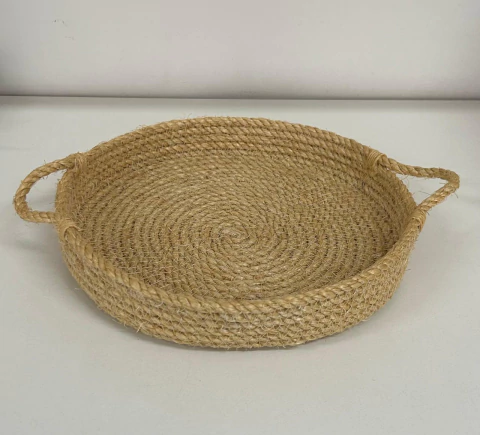 Cesta baixa com alça de sisal com 24cm de diâmetro.