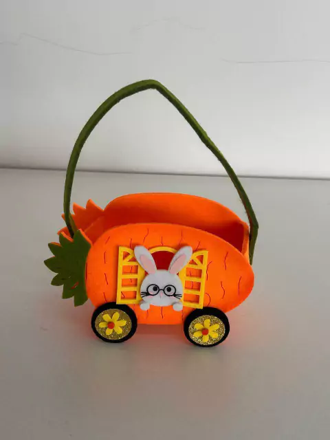 Cesta carrinho laranja de feltro 14cm larg. quantidade