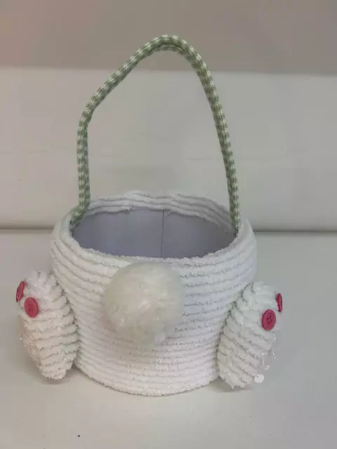 Cesta de pelúcia branca alça listrada, com 28x24x20cm