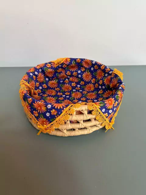 Cesta redonda de palha de carnaúba decorada 20x7c