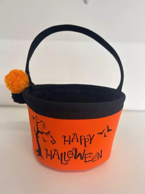 Cesta tecido laranja Happy Halloween 20x20x12cm