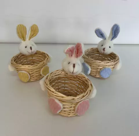 Cestinha de palha com coelho colorido 11cm quantidade