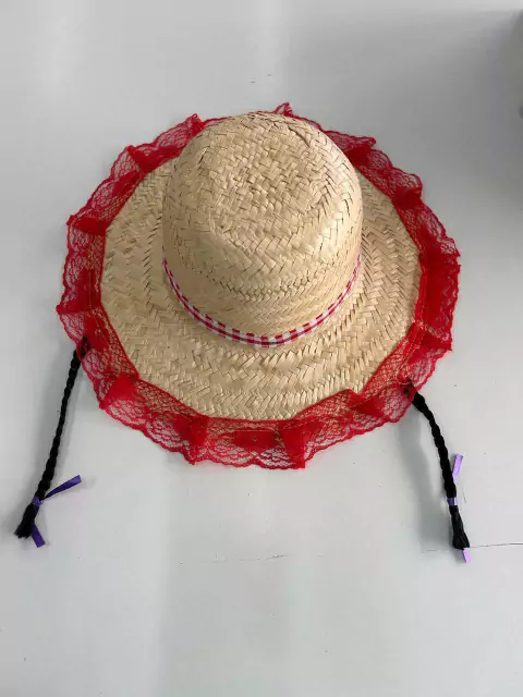 Chapéu de palha com renda e tranças tam. infantil quantidade