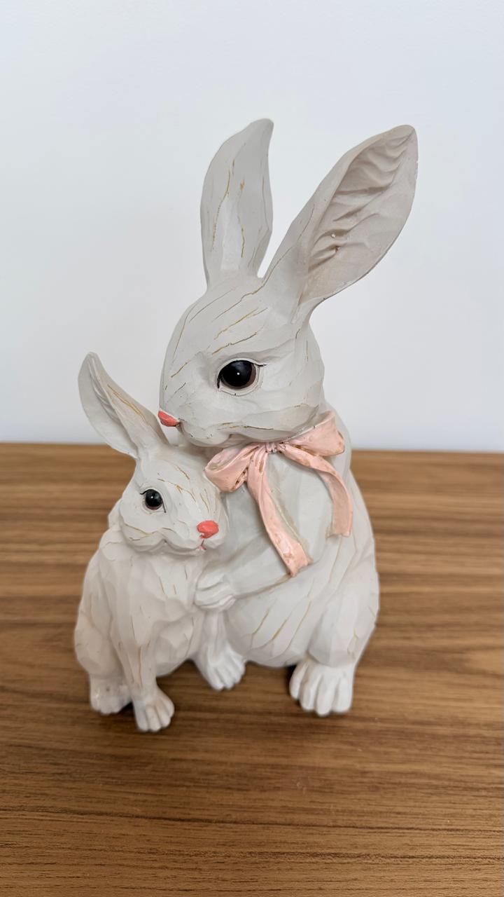 Coelha com filhote de resina 24cm
