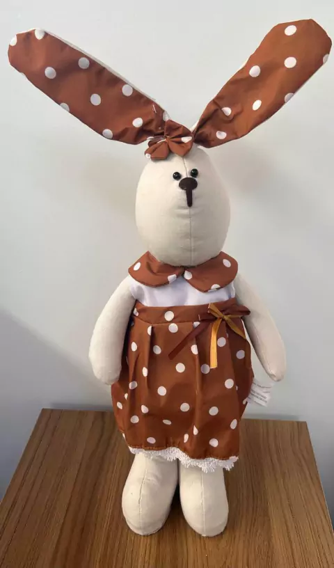 Coelha de tecido em pé branco e marrom 43cm quantidade