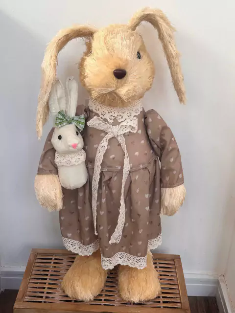 Coelha em pé de palha bege com 60cm de altura.
