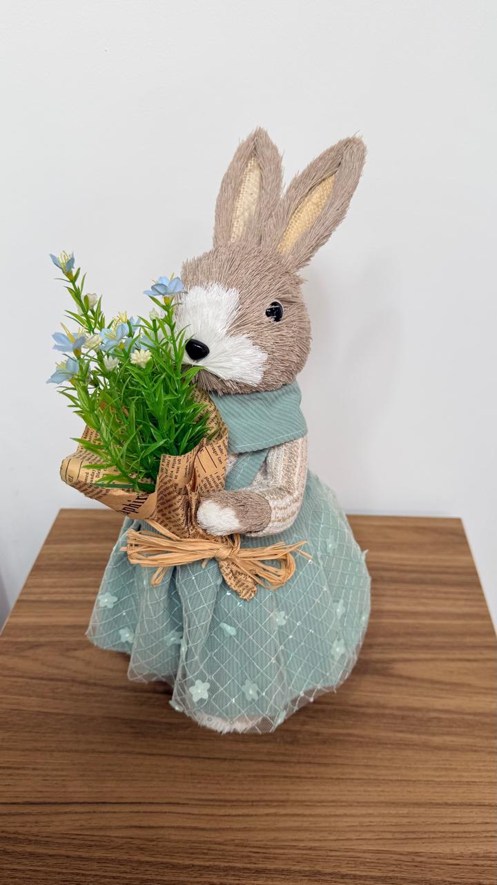 Coelha roupa verde com flores no jornal 40cm quantidade