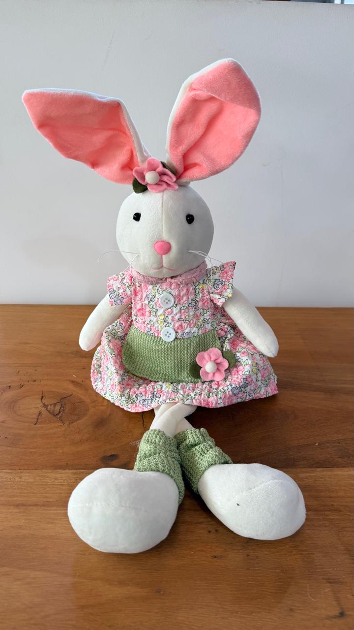 Coelha roupas floridas pernas mole 53cm no total.