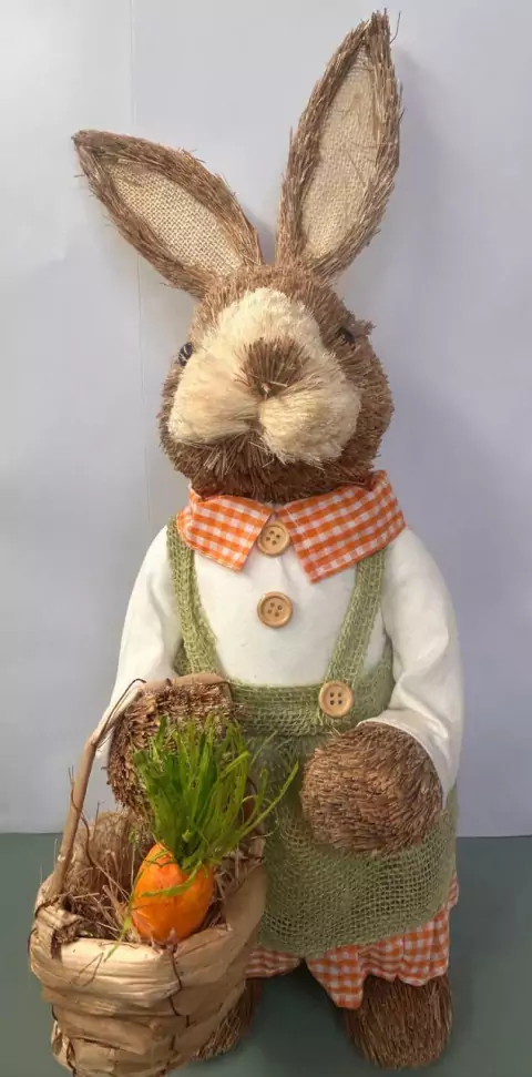 Coelha rústico de palha com cesto 60cm