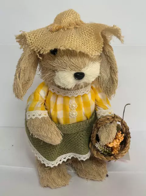 Coelha rústica em pé com chapéu e cesta 23cm quantidade