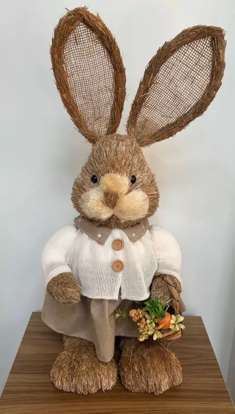 Coelha rústico de palha com cesto 60cm quantidade