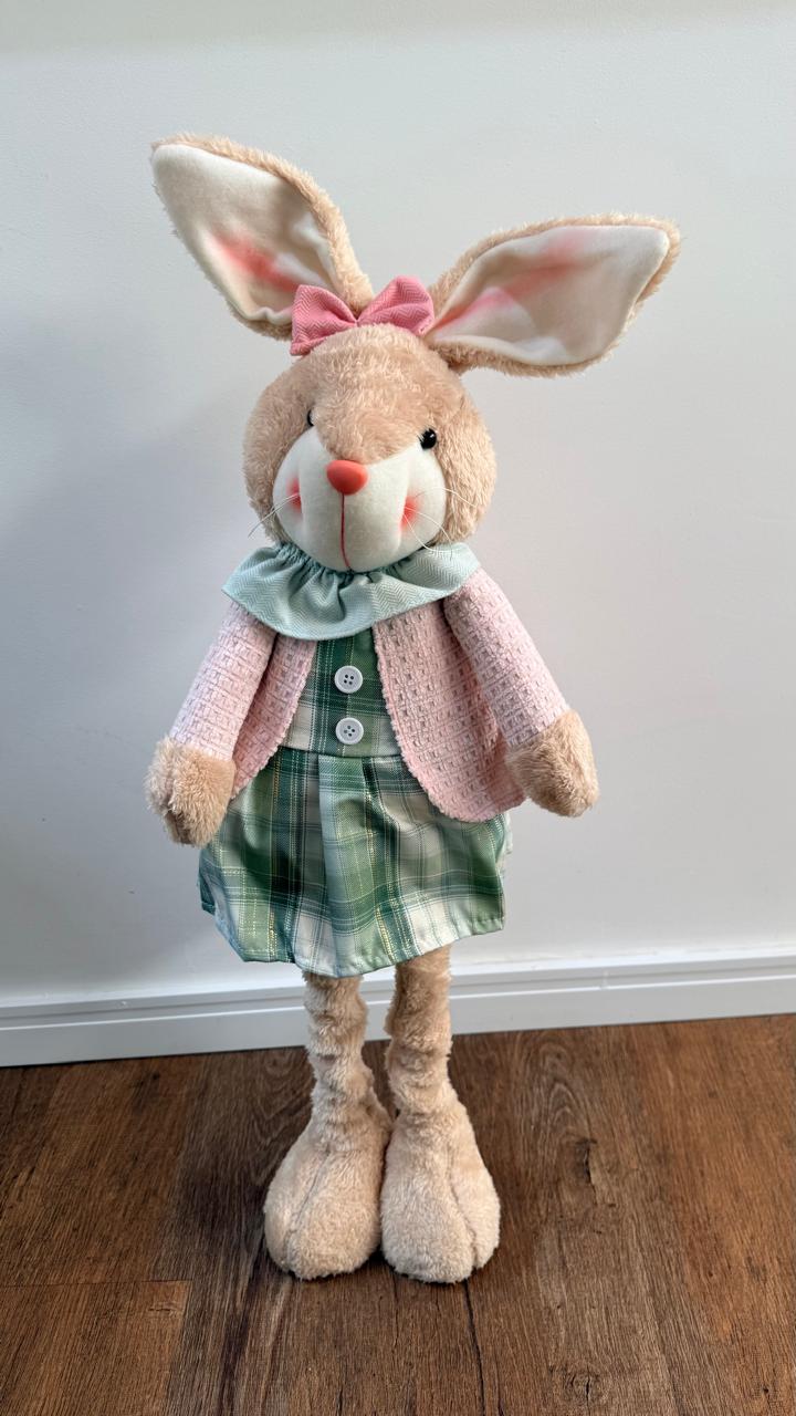 Coelha verde rosa perna retrátil 90x35x16cm