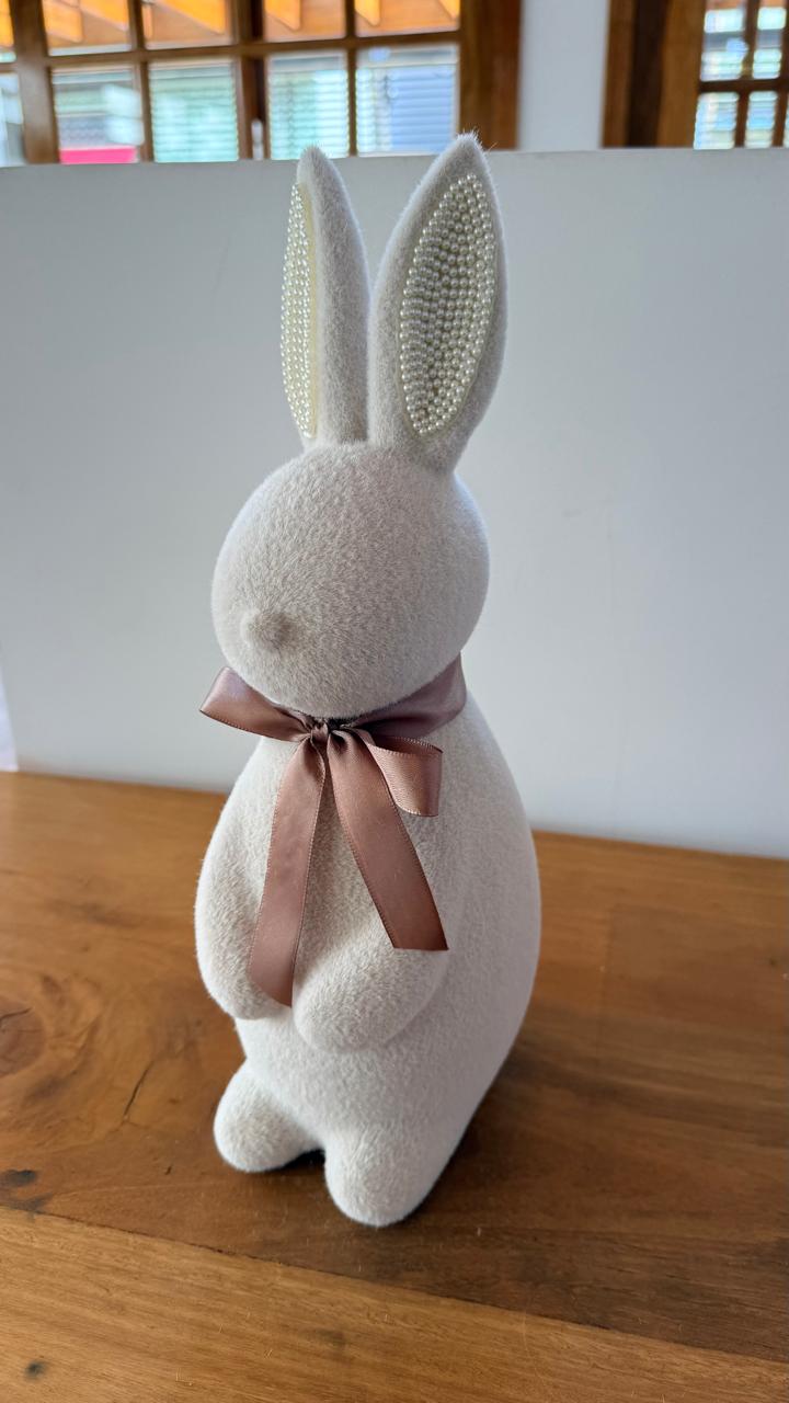 Coelho aveludado bege de resina 10x27cm