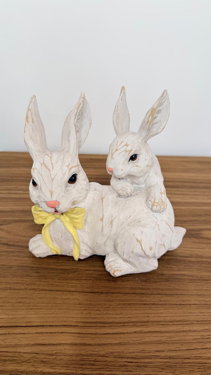 Coelho com filhote de resina 16cm