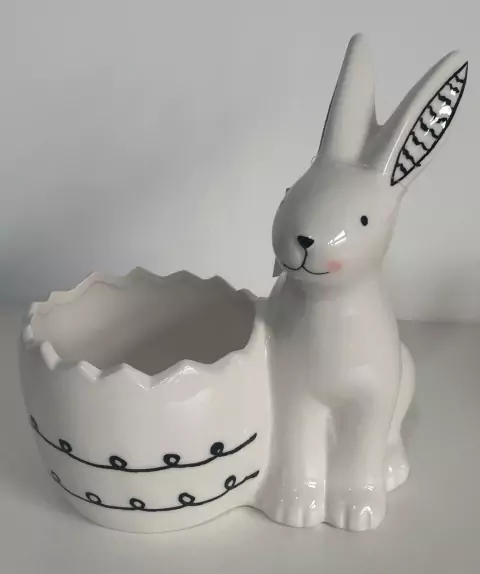 Coelho de porcelana com cesta com preto e branco 20cm quantidade