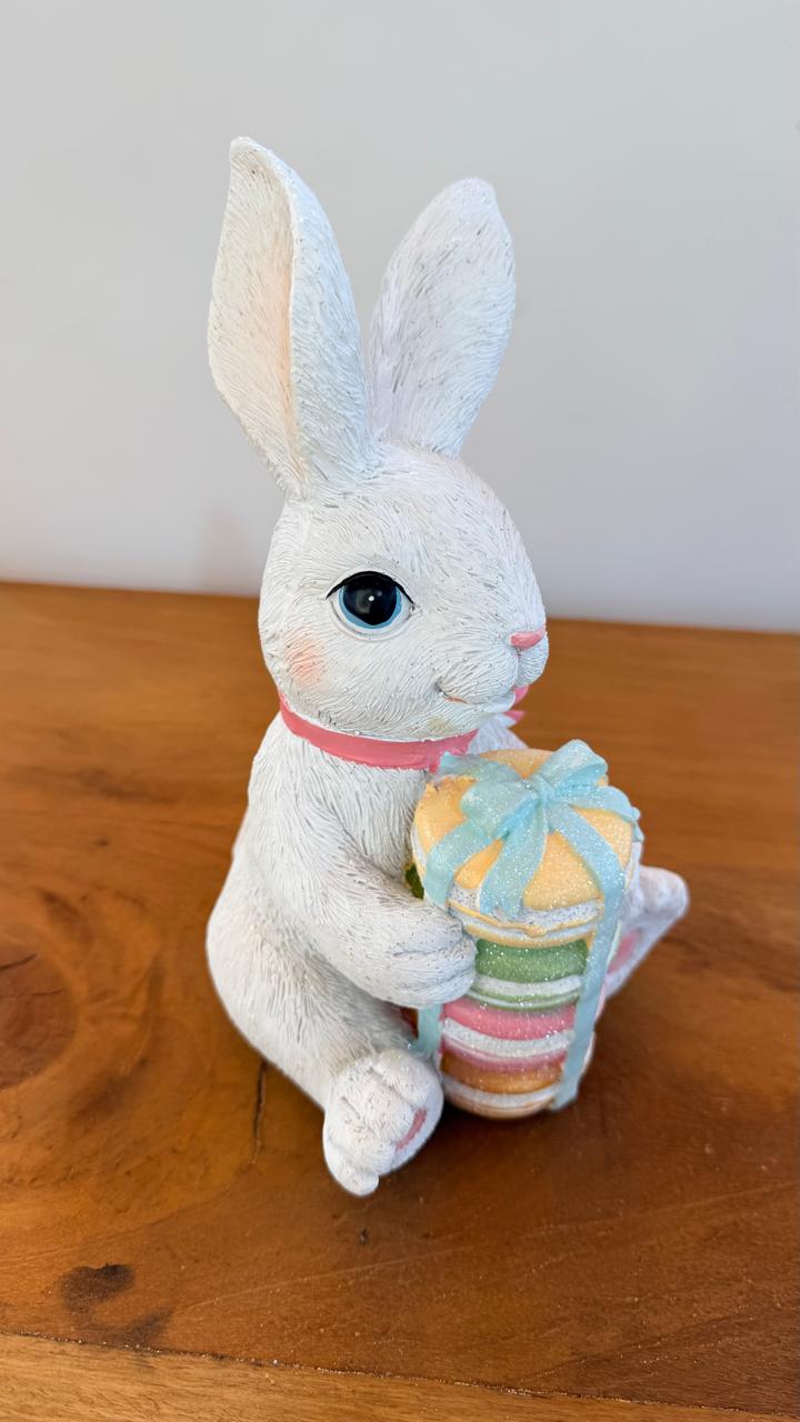 Coelho de resina com macarrons 21,5cm