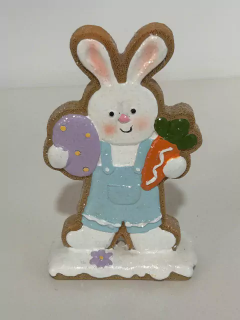 Coelho decorativo de resina com 14cm de altura.