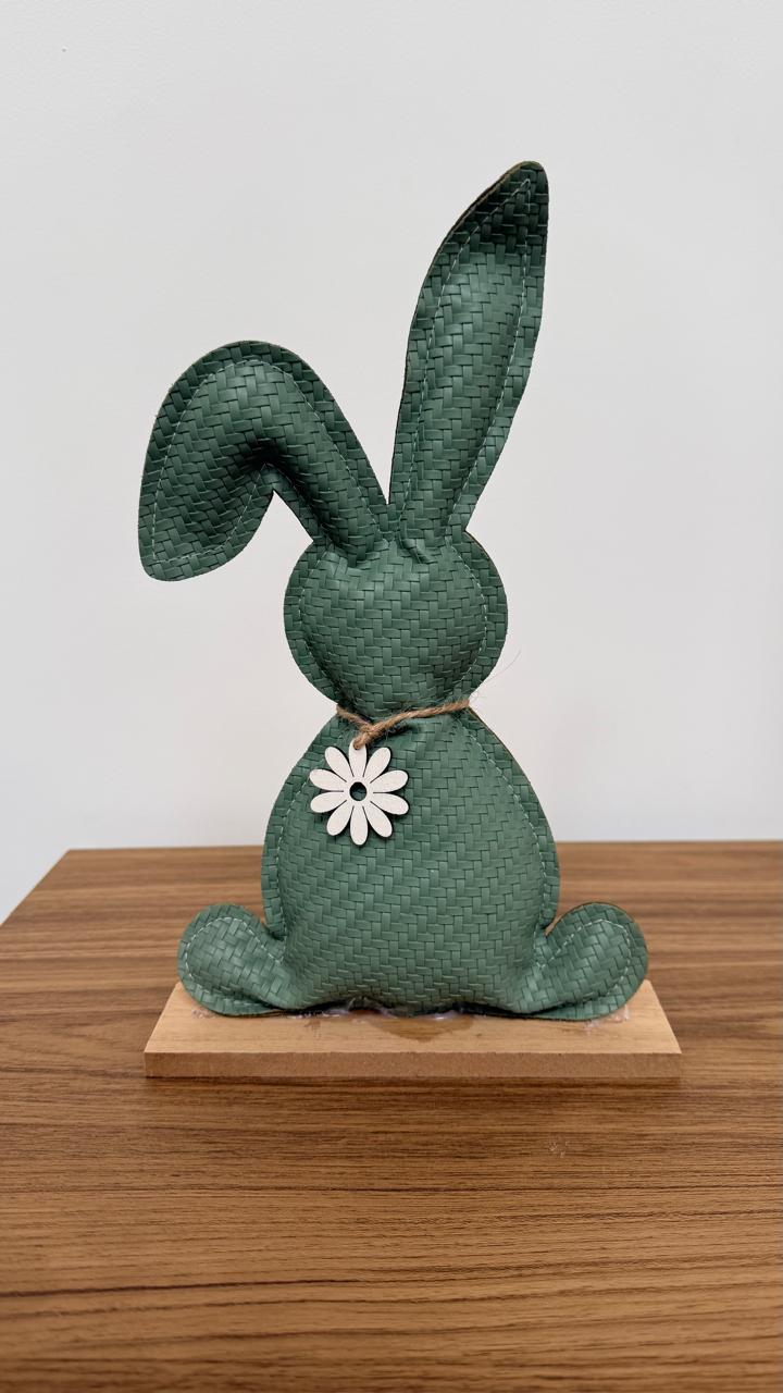 Coelho decorativo verde de couro com colar de flor, com 30x18x5m