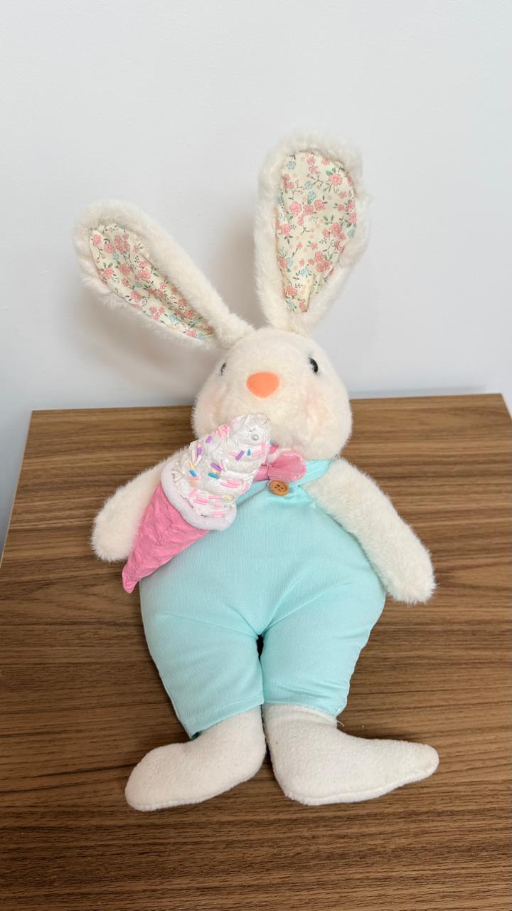 Coelho deitado roupa verde com sorvete 29x21x16cm
