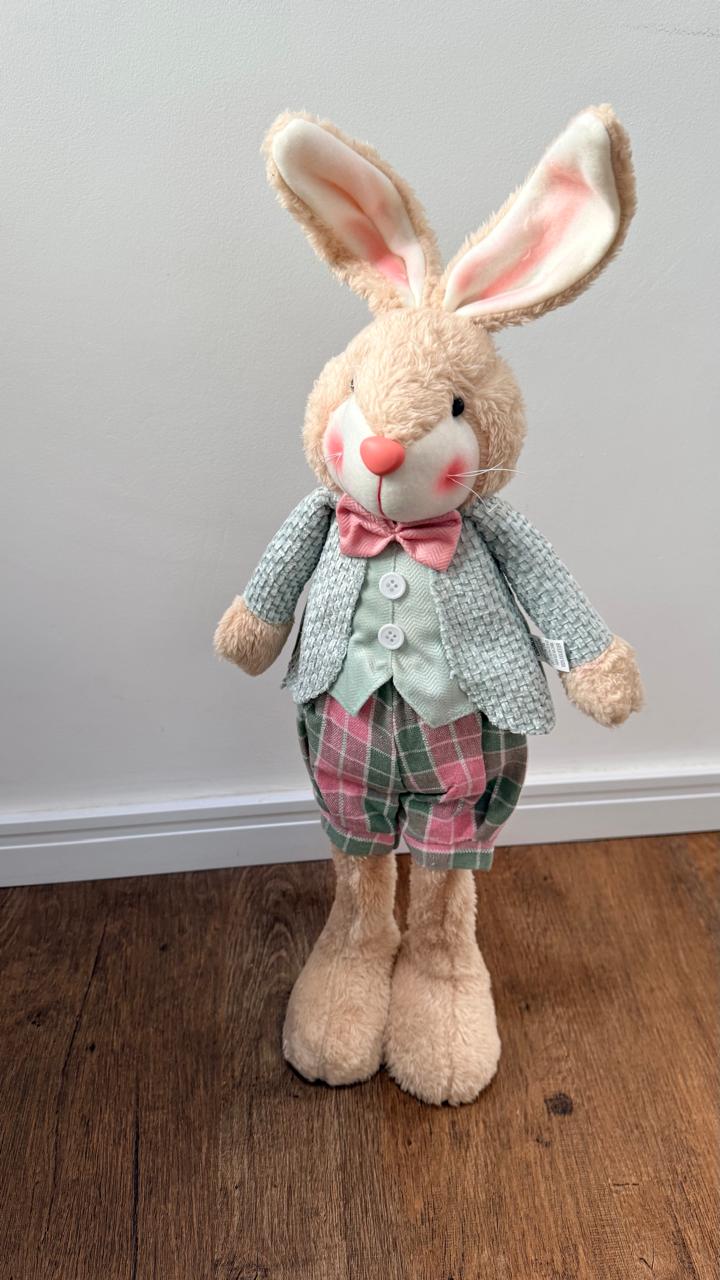 Coelho em pé roupa xadrez verde e rosa 70cm quantidade