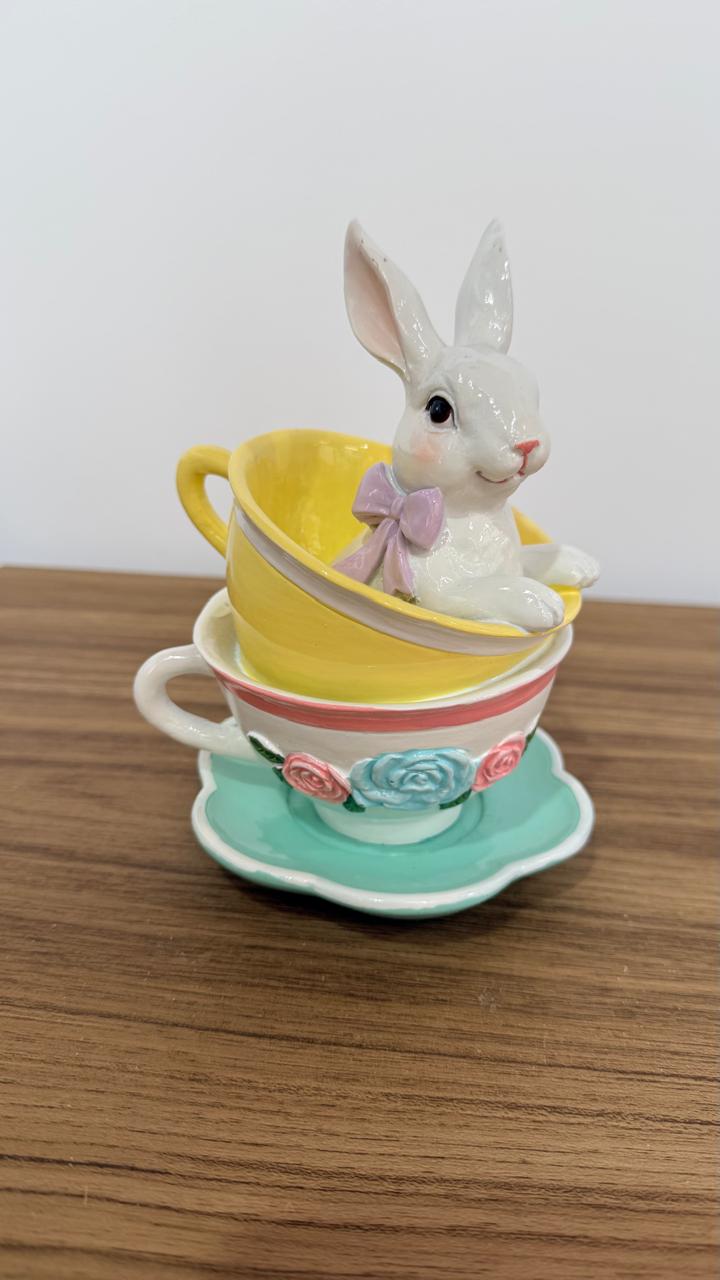 Coelho nas xícaras de resina 15cm