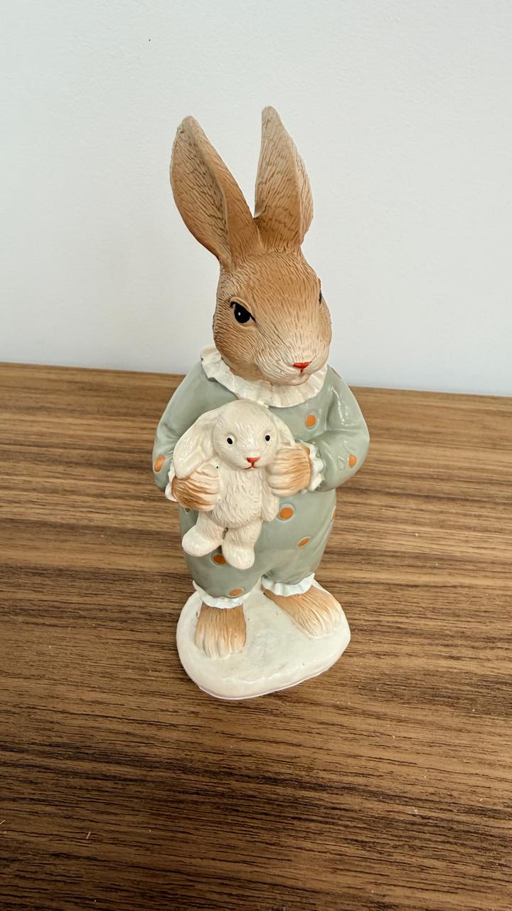 Coelho pijama com coelhinho de resina16cm