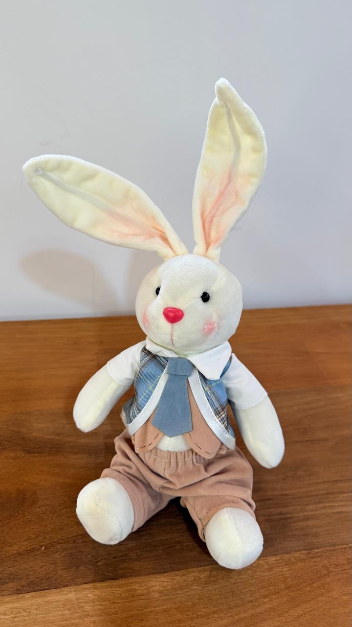 Coelho sentado com gravata azul 31cm
