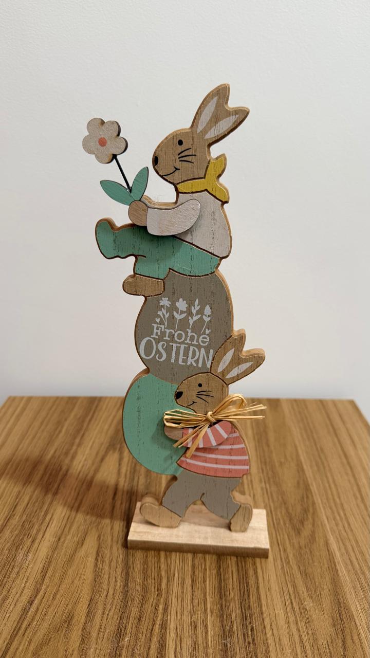 Coelhos com pilha de ovos madeira 30cm