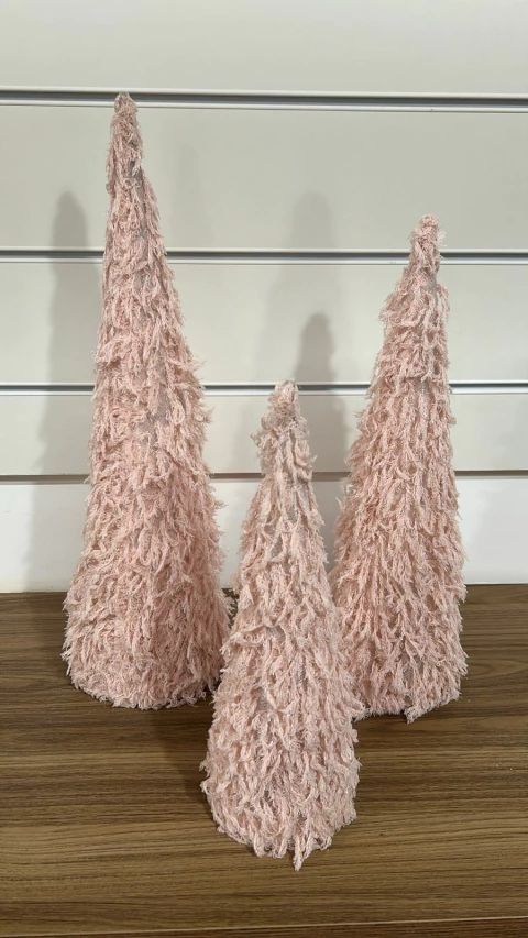 Cones decorativos rosa pompom 3 pçs com 40, 50 e 60cm