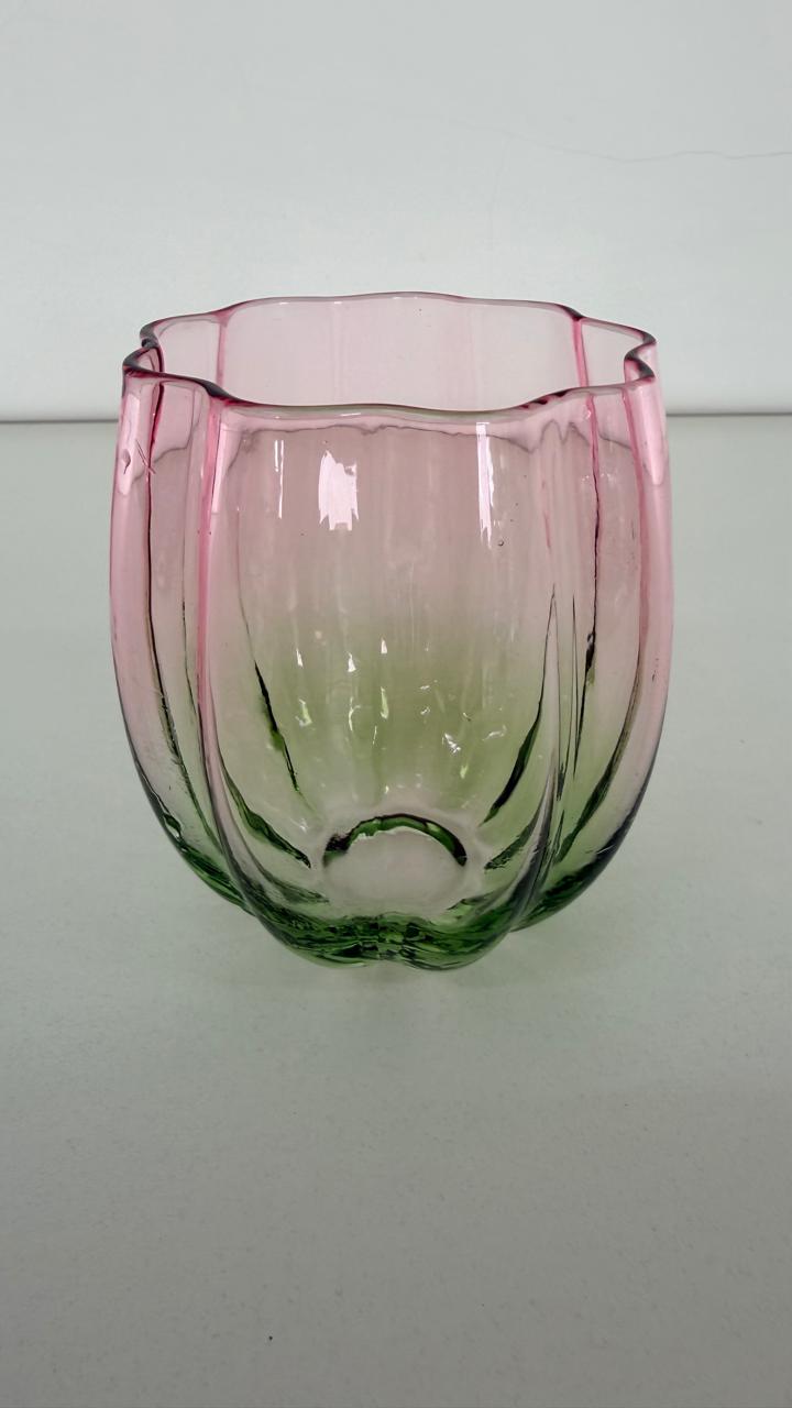 Copo vidro degradê verde e rosa 9x10cm quantidade