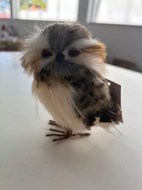 Coruja branca e cinza pelúcia com 13cm