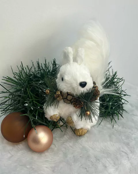 Esquilo branco em pé com colar de pinhas 18cm quantidade