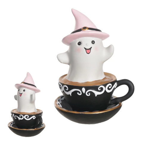 Fantasminha na xícara em resina 16,3cm quantidade