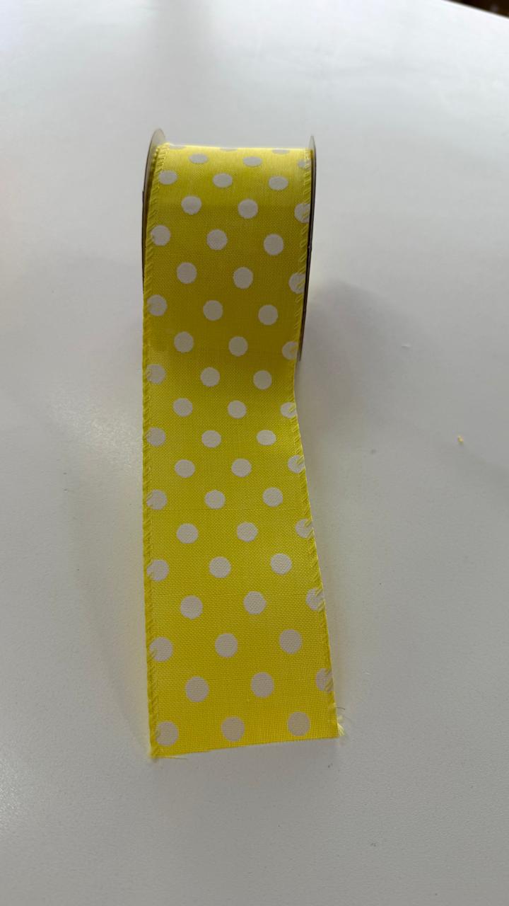 Fita aramada amarela com poá branco 6,3cmx9,14m quantidade