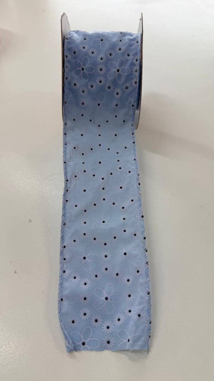 Fita aramada azul com flores brancas e pretas 6,3cmx9,14m